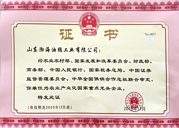 山东渤海油脂工业有限公司二期年产18万吨植物油精炼项目投产