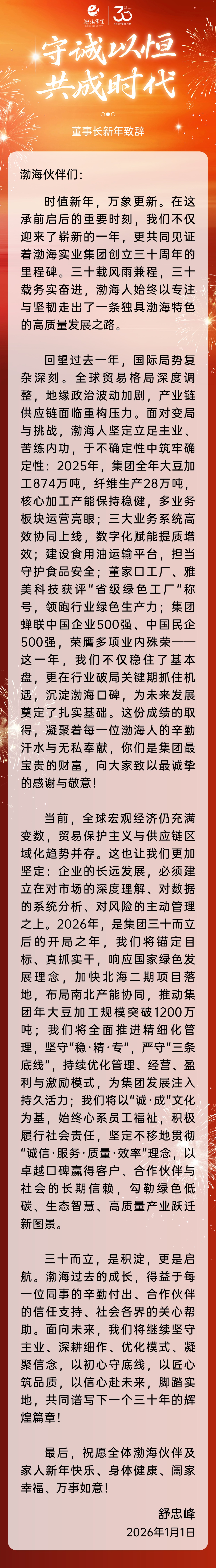 守诚以恒 共成时代|山东渤海实业集团董事长二〇二六年新年致辞